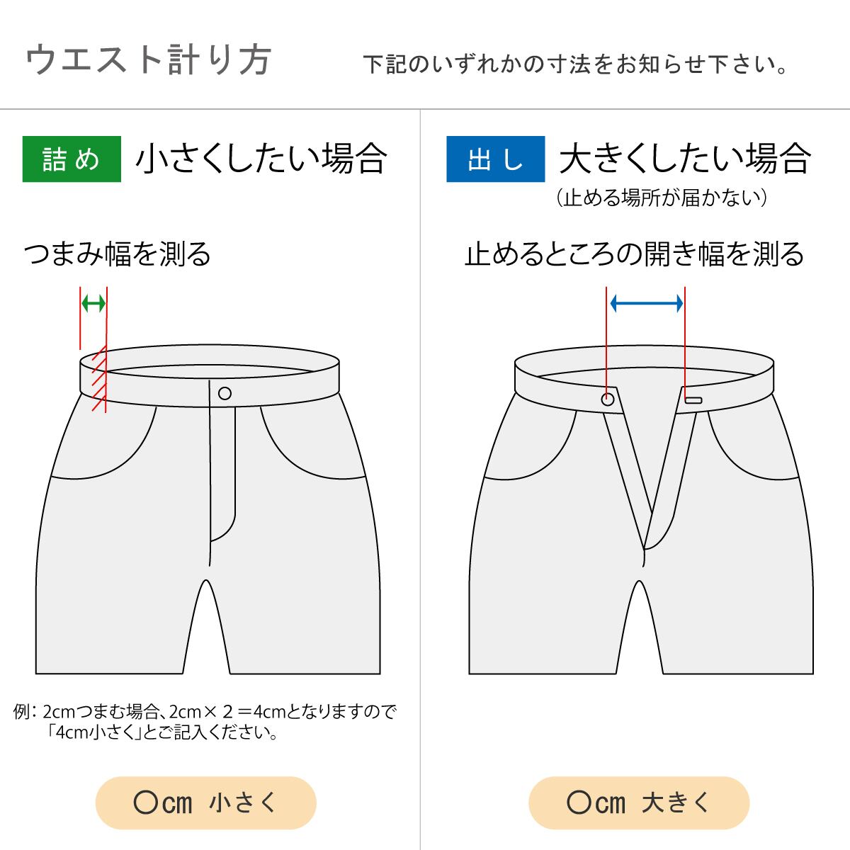 ウエスト 詰め・出し / 後ろ中央 (6cm程度) / 紳士・レディース スラックス ズボン/ 宅配お直し リフォーム 補正 /