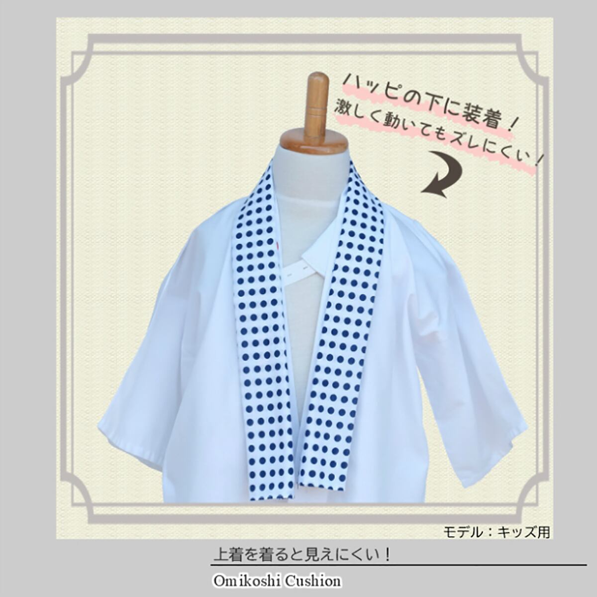 ハッピや上着の下に装着する、斜め掛けタイプの肩用クッションです。